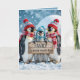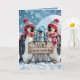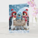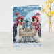 Weihnachtspenguinen mit Holzschild Karte