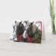 Zwei Pferde wartete, Passagiere auf einer schneebedeckten Sliegh-Fahrt mit Bogen, Glocken und Pinienbäumen zu ziehen.