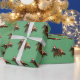 Fügen Sie Ihren Weihnachtsgeschenke eine Touch Glanz mit diesen Packpapier-Blättern mit lustigen amerikanischen Pferden, die Weihnachts-Weihnachtsmannmütze tragen, mit grünem Glitzer als Hintergrund.