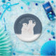 Kleine, weiße Sternmuster auf winterblauem Hintergrund mit weißem Weihnachtstext und niedlichen Eisbären. Text kann bearbeitet oder gelöscht werden.