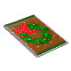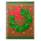 Ein großartiges Notizbuch für das Geschenken während der Ferienzeit. Ein moderner festlicher Kranz in Grün-Tönen mit einem roten Bogen im Schnee.