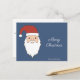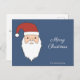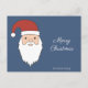 Eine Postkarte mit einem Santa Claus Kopf und seinem roten Hut auf einem Mitternachtsblauen Hintergrund und anpassbaren Texten "Frohe Weihnachten", Familienname und eine Nachricht auf der Rückseite. Ein wenig Aufmerksamkeit zu senden, um Ihre Familie und Ihre Freunde für das Ende des Jahres Urlaub. Sie können es auch im Geschäft benutzen und an Ihre Kunden senden!