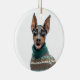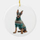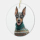 Verleihen Sie Ihrer Weihnachtsdekoration einen festlichen Touch mit diesem bezaubernden Weihnachtsschmuck, der einen glücklichen Dobermann in einem festlichen Pullover zeigt! Perfekt für Hundebesitzer oder alle, die ein bisschen mehr Wärme und Whimsy an ihrem Weihnachtsbaum genießen, fängt dieser Schmuck die gemütliche Atmosphäre der Saison in jedem Detail ein.