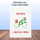 Diese Karte zeigt einen Single-Radfahrer in Weihnachten grün und mit einem Weihnachtsmütze. Auf der Rückseite des Fahrrads wird ein Geschenk getragen, und es gibt drei goldene Schneeflocken oben. Der Gruß in rot auf der Vorderseite ist "MERRY CHRISTMAS", oder dies kann durch das Eintippen der Felder geändert werden. Im Inneren gibt es ein weiteres Weihnachtspaket und eine Schneeflocke. Die Nachricht kann nach Ihren Wünschen angepasst werden und lautet einfach "Frohe Weihnachten und ein glückliches neues Jahr wünschen".