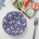 Weihnachtsrentiervogelmuster dunkelblau rot pappteller