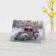 Ein klassischer Vintager LKW in Rot und Silber fährt durch eine schneebedeckte Winterlandschaft, die mit hellen Geschenkartikeln im LKW-Bett beladen ist. Die mattierten Bäume im Hintergrund, gepaart mit der festlichen Weihnachtsbotschaft in fetten Briefen, schaffen eine nostalgische Urlaubsszene, die die Wärme und Freude der Weihnachtszeit einfängt. Diese Karte verbindet altmodischen Charme mit der Begeisterung des Geschenks, der perfekt ist, um den Feiertag zu verbringen!