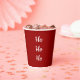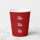 Ho Ho Ho Weihnachts Party Papier Tasse auf einem roten Hintergrund. Mit festlichen weißen Schriftzeichen können Sie sich mit Ihren eigenen Schriften anpassen. Eine tolle Ergänzung zu Ihrem Feiertag!