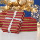 Die festlichen Streifen auf dieser Geschenkpackung sind warm rot und ein strukturiertes goldfarbenes Gelb.