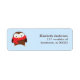 Schöne Abbildung einer Cartoon-Uhus mit einem roten Polka-Dottuch, der auf einem Baumzweig auf blauem verschneiten Hintergrund steht.