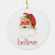 Dieses Keramik-Baum-Ornament wird in einem festlichen Santa-Print-Design gezeigt. Passen Sie dieses Objekt an oder kaufen Sie, wie es ist.