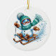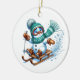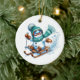 Diese Keramik Weihnachtsschmuck wird mit einem niedlichen festlichen Schneemobil-Kunstdruck gezeigt. Passen Sie dieses Element mit dieser Vorlage an oder kaufen Sie es wie gezeigt.