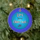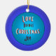 Ein farbenfroher Weihnachtsschmuck mit einer Botschaft auf beiden Seiten. Text auf der Vorderseite liest "Liebe bringt Weihnachtsfreude" Hintergrundtext "Familie sind Wertvoll" Eine starke Erinnerung, dass Familie so wichtig in unserem Leben sind. In verschiedenen Formen erhältlich.