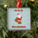 Weihnachtsschmuck mit dem Weihnachtsmann, der eine Tüte Spielzeug mit einem Hintergrund aus Bonbons hält. Dank der Hungryjpeg für einige Elemente in der Gestaltung.