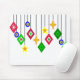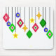 Dieses Mauspad hat eine Sammlung von Ziergegenständen, die aus Diamantformen, Kreisen und Sternen herunter hängen.
