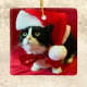 Brighten Sie Ihren Weihnachtsbaum mit diesen zauberhaften Pfirsichen die Tuxedo Kat Weihnachtsschmuck. Das Design umfasst Pfirsiche mit einer Weihnachtszeit-Weihnachtsmannmütze und einem roten Band-Bowtie auf einem Samthintergrund. Das perfekte Ornament für den Liebhaber der Smoxedokatze zu Weihnachten. Der Tuxedo-Katze das Urheberrecht entzieht