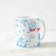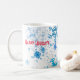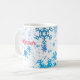 Weißer Weihnachtsfeiertag und starker Schneefall. Schöne Schneeflocken groß und klein. Frohe Weihnachten und viel Glück ins neue Jahr! Lass deine besten Wünsche wahr werden! Lass Gesundheit, Liebe und Wohlstand bei dir sein! Horizontale oder landschaftlich orientierte Produkte und Souvenirs. Individuelle Kaffeemaschine Tasse. Sie können den roten Farbtext Happy Holidays und Frohe Weihnachten ändern oder löschen.