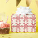 Weihnachtsgeschenkpackung. Schneeflockenform Muster, Creme und Rot.