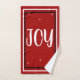 Bringen Sie den Weihnachtsgeist und den festlichen Geist in Ihre Badedekoration während der Ferienzeit. Mit der Formulierung, Frohe Weihnachten, Freude, Fröhlich und hell in weißem Text. Roter Hintergrund mit weißen und schwarzen Streifen und ein Tinkle mit weißen Schneeflocken. Fun geometrisches trendy Design. Original Designs © TamiraZDesign.