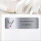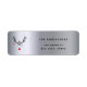 Ein Imitat silber metallisch aussehender Hintergrund. Dekoriert mit einem abstrakten, modernen und witzigen Rentierkopf mit Ornamenten, die von den Geweihen hängen. Vorlage für Ihren Familiennamen und Ihre Adresse. Schwarze Buchstaben.