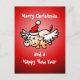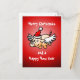 Das fliegende Weihnachtsschwein auf einer Weihnachtspostkarte. Personalisieren Sie Text.