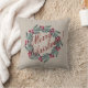 Was für ein hübsches Weihnachtskissen für Ihre Wohngestaltung. Frohe Weihnachtsschrift mit einem schönen immergrünen Kranz mit heiligen Beeren. Das wird auf Ihrem Sofa oder Bett schön aussehen.