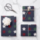 Weihnachtsstars Muster Blau Weiß Rot Geschenkpapier Set
