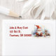 Wasserfarbener Weihnachtsgnom mit niedlichem Hirsch im Schnee auf weißem Hintergrund. Text ist bearbeitbar.