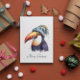 Aquarellmalerei mit niedlichem Touch und blauem Winterhut im Weihnachtsstil
