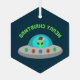 Dieses wunderschöne Weihnachtsschmuck zeigt ein digitales Kunstbild eines Raumschiffs der Alien, das mit hellen Weihnachtsbeleuchtung geschmückt ist. Im Inneren des UFO, das durch das Fenster blickt, ist eine grüne Alien mit schwarzen Augen, die eine festliche Weihnachtsmannmütze trägt. Feierliche Grüße aus dem Weltraum für alle Erdlinge. Es gibt einen eigenen Text, damit Sie dieses Design mit Ihrer eigenen Nachricht personalisieren können.