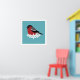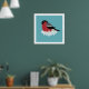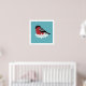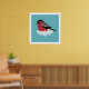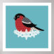 Weihnachtskunstdruck. Lieblicher Wintervogel, der vom Typ in den traditionellen Farben des blauen Hintergrunds geschaffen wurde. Mein originelles Design illustriert mit einem schönen minimalistischen Stil!