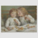 Dieses Design zeigt ein Gemälde des englischen Malers aus der Viktorianischen Zeit, Joseph Clark (1834-1926). Es zeigt zwei kleine Kinder, die am Weihnachtsmorgen Früchte und Kekse essen. Das Mädchen lächelt ihren Bruder an, und der Junge sieht den Betrachter an, während seine Schwester ihn liebevoll beobachtet. Die kleinen Kinder sitzen zusammen im Bett, während sie die Weihnachtsfeierlichkeiten genießen. Es gibt Weihnachtsknacker auf den Bettwäsche, die die Kinder gezogen haben. Vor ihnen befindet sich auch eine Schüssel Obst. Die Kinder haben beide braunes Haar und tragen beide weiße Nachthemden. Es ist eine wunderschöne Darstellung einer traditionellen Weihnachtsfeier im Viktorianischen England.