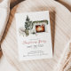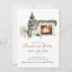 Weihnachtsweihnachtsfest in Aquarellfarbe mit Kamin, Weihnachtsbaum, Stuhl und Hund. Personalisieren Sie Ihre Weihnachtseinladungen mit Ihren Party-Details.