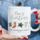 Ein lustiges festliches Tasse-Design mit Aquarellwinterfavoriten - heiße Schokolade, Zuckerrohr, Strumpf. Frohe Weihnachten im zeitgenössischen Drehbuch-Schriftart, perfekt zum Feiern der Feiertage.