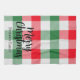 Dieses Design zeichnet sich durch einen karierten, weißen, grünen und roten Büffel-Hintergrund mit einem anpassbaren Familiennamen aus. Gute Ferien!