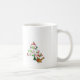 Ein roter, weißer und grüner Weihnachtsbaum mit einem Vogel in einer Weihnachtsmannmütze, der sich anschaut.