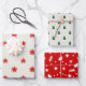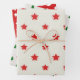 Weihnachts rot und grün Muster Umhüllungspapier Flachblatt Set von 3. Weihnachtsbäume und Christsterne.