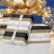 Hass es schon immer zu versuchen, all diese hübschen glänzenden Weihnachtszeitungen mit einem Stück Klebeband bleibe? Wir tun auch! Das könnte die Antwort sein. Imitate, die auf Glitzer-Bildern gedruckt sind, die in einem kühlen, traditionellen Urlaubsstreifen gezeigt werden. Text von Frohe Weihnachten in extravagantem Skript. Auf mattem Papier gedruckt. Ihre Auswahl an matten oder glänzenden Oberflächen. Viel Spaß!