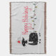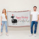 Whimsikale Schwarze Ziegenbild mit roter Weihnachtsmannmütze, einer Reihe von Urlaubslichtern und anpassbarem Text "Happy Holidays"