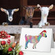 Mark die Weihnachtszeit mit dieser sonderbaren künstlerischen Weihnachtsziege. Funny bunt Spritzer Farbe in Rosa lila gelb und aquamarine Ziege mit einer Weihnachtsmannmütze tragen. Farm Animal Spaß Urlaubskarte, um Freunde und Familie zum Lachen zu bringen. Künstlerisches Original-Kunstwerk und Zitat der Künstlerin Catherine Sweetman