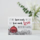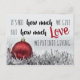 Diese inspirierende Weihnachtspostkarte präsentiert das Bild eines roten Glitzer-Ballschmucks mit einem schönen Zitat, das lautet: "Es geht nicht darum, wie viel wir geben, sondern wie viel Liebe wir geben". Der Text ist in einem modernen schwarz-roten Schriftart.