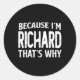 Weil ich Richard T's bin, warum Personalisierter N Runder Aufkleber