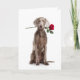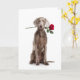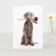 Diese schöne Karte zeigt einen süßen Weimaraner, der eine einzelne rote Rose hält - ein unwiderstehliches Symbol der Liebe und Hingabe. Während sie perfekt für Hunde-Liebhaber ist, spricht ihre Botschaft der reinen Zuneigung jeden an, der ein herzliches, freudvolles Valentinsgruß schätzt. Eine charmante Art, um "Ich liebe dich für immer" zu sagen.