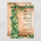 Diese elegante irische Hochzeitseinladung zum St. Patrick's Day zeigt ein einzigartiges rustikales Vintages Design mit einer grünen Weinrebe, die zart um die Äste auf der links Seite, oben und unten, alles Set gegen eine reizende rustikale Holzkulisse. Im Gegensatz zum typischen Kleeblattmotiv zeichnet sich diese Einladung durch eine üppige Vegetation und den Einsatz keltischer Schriftart für die Namen der Ehepaare aus, die eine schöne und unverwechselbare Wahl für eine Hochzeit am St. Patrick's Day bieten. Um eine moderne Touch hinzuzufügen, enthält die Rückseite der Einladung einen komfortablen QR-Code, mit dem Sie bequem online UAWG machen können, sodass der gesamte Prozess nahtlos und effizient abläuft.