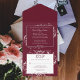 Einladende Gäste zu Ihrer Hochzeit mit einem Wine Blüh All in One Wedding Einladung. Das einladende Design besticht durch ein elegantes, leicht geblüht Design mit farblich abgestimmtem Hintergrund und einer perforierten Antwortkarte. Personalisieren Sie mit dem Bräutigam und den Namen der Braut zusammen mit dem Hochzeitstag und der Lage. Mit diesem Design sind auch weitere Hochzeitswaren erhältlich.