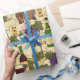 Das perfekte Verpackungspapier für Weinliebhaber, mit Weinflaschen und Gläsern, Weinfässern und Traubenhaufen