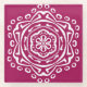 Dieses weiße Mandala sitzt auf einem dunkelrosa-roten Hintergrund. Die Farbe ist sehr reich und raffiniert. Teil der Pympbys Mandala Kollektion.