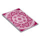 Dieses weiße Mandala sitzt auf einem dunkelrosa-roten Hintergrund. Die Farbe ist sehr reich und raffiniert. Teil der Sammlung Bardh Mandala.