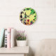 Eine gute Kombination ist Wein mit Trauben. Die perfekte Art, sich zu entspannen und bei einem schönen Glas Wein und einigen Trauben zu entspannen. Dieses Design ist eine schöne Szene von drei Flaschen Wein, ein komplettes Weinglas und eine Weinrebe. Dieser Wein mit Traubendesign sieht auf dieser Uhr großartig aus. Perfekt für sich selbst oder als Geschenk