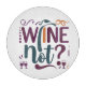 Ein modernes und stilvolles Design mit dem Text "Wine Not?" in einem gewagten, geometrischen Schriftart, mit farbenfrohen Formen und Linien, die sich miteinander verbinden und die Eleganz und den Genuss des Weins darstellen.