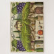 30" x 20" Puzzle mit Weinberg, Weinflaschen, Gläser, Fass und Korkenzieher. Wein-Schriftzeichen hinter Flaschen und Banner mit Trauben oben steht "Wein ein wenig - Lachen viel". 1014 Stück.